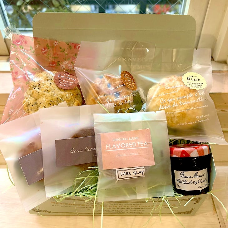 当店人気のオリジナルスコーンは厳選された素材(国産小麦・よつ葉バター)のみを使用しお店で手作りしています。